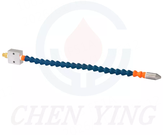 6.COM的油雾出口处建议搭配OB喷枪,其万向曲管可任意弯曲,将油雾输送至润滑点,OB喷枪亦可加装强力磁座,不需锁固即可吸附于可导磁的金属表面。OB喷枪标准净重为149g。